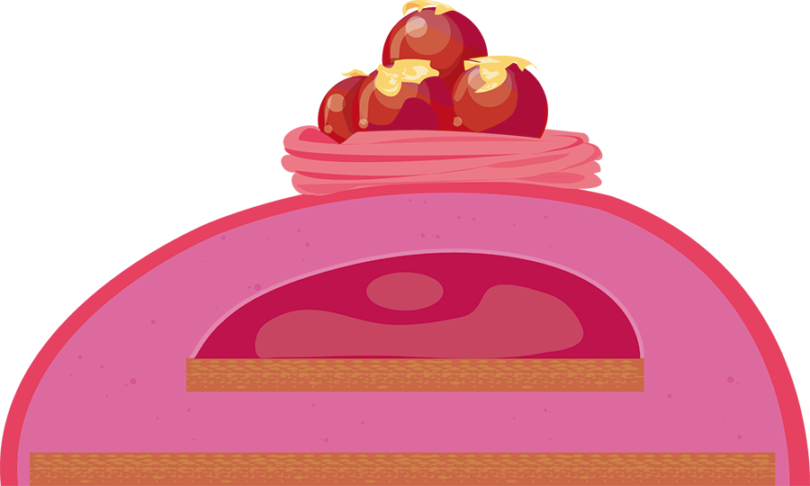 Couler de la mousse à la griotte. Disposer la gelée à la griotte. Ajouter le restant de mousse à la griotte. Fermer avec le deuxième biscuit. Surgeler et décorer.
