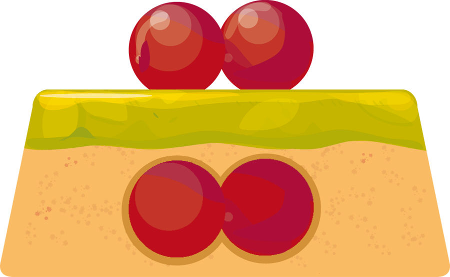 Garnir les moules en silicone de nougatine à la pistache refroidie, recouvrir de 50% du pain de Gêne à la griotte. Ajouter au centre une griotte IQF.